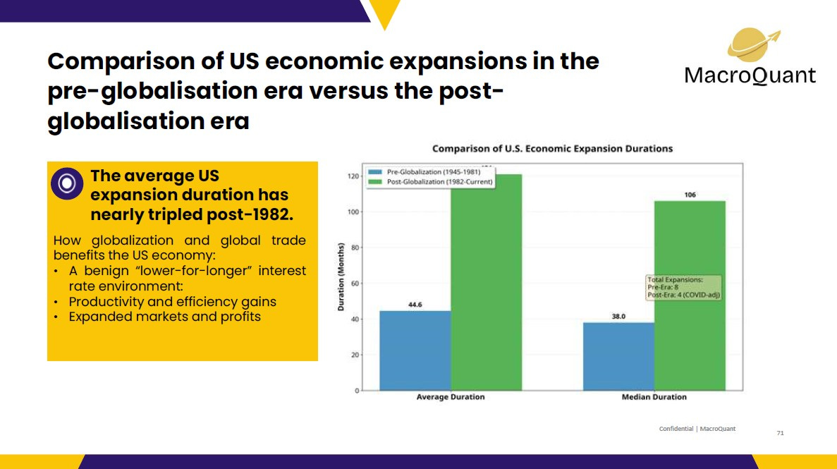 This report analyzes the divergence between the real economy and financial markets in the post-globalization era, a phenomenon critical for modern asset allocation and risk management. Interestingly, a closer look at US expansions reveals a lengthening of the business cycle in the post-globalization era (post-1982). Structural factors, including improved inventory management, diminished housing cyclicality, and the stabilizing influence of globalisation and global trade, have led to longer economic expansions. Our analysis shows that the average US expansion duration has nearly tripled post-1982.